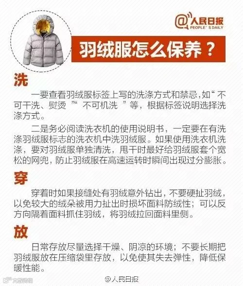 正确做法:羽绒服尽量手洗或者干洗,最好不要用洗衣机洗,尤其是甩干这个步骤。