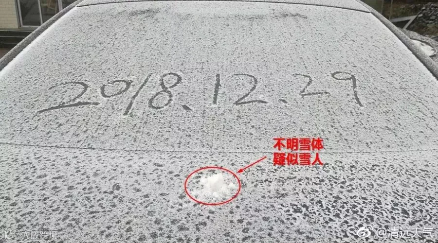 2018年12月29日,广东清远连州南风坳,@清远天气:目测距离一个雪人还差两场“头皮屑”。