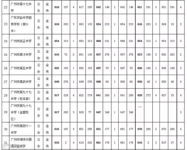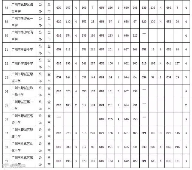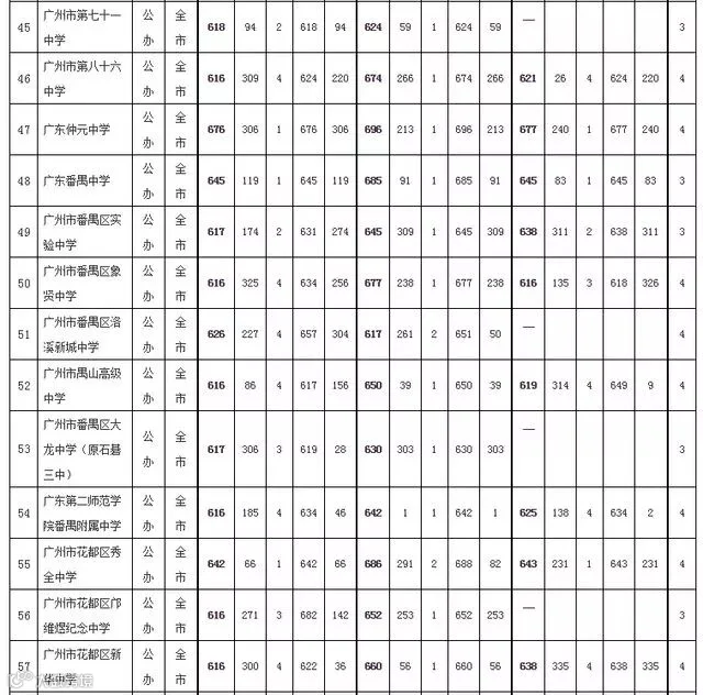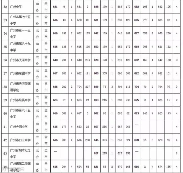 2019年广州市普通高中学校录取分数(提前批统一计划)如下: