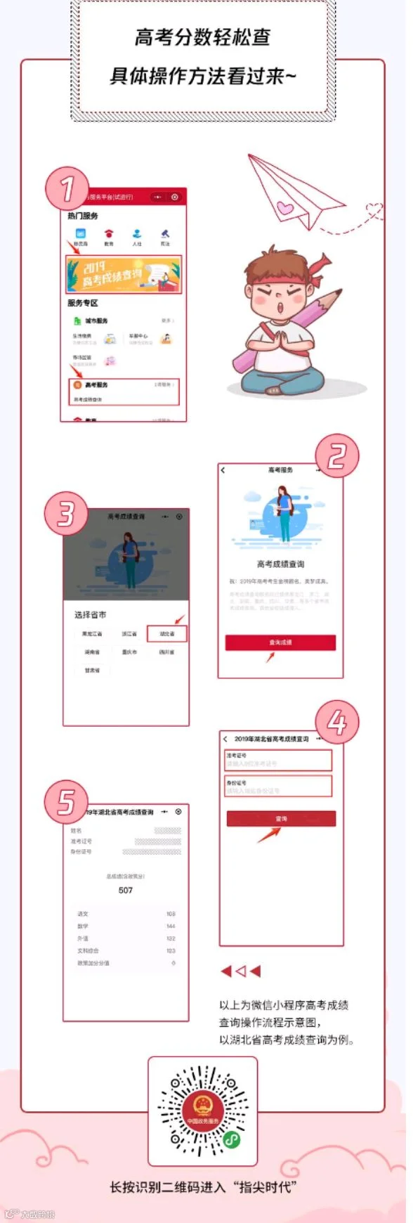 “中国政务服务平台”微信小程序也特别开通了高考查分入口,该小程序平台仅提供权威的高考分数查询入口,数据以各地教育部门发布为准。