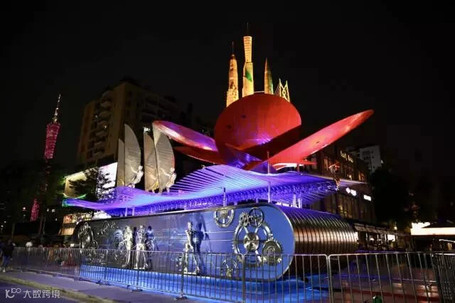 10月22日,参加国庆阅兵的广东彩车夜晚下显得极具现代感。夏宇 摄