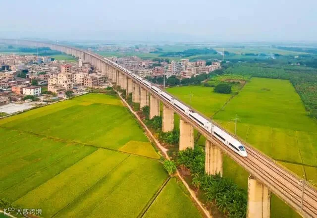 10月27日下午,汕头市潮阳区关埠镇,高铁穿过稻子成熟的村庄。可乐 摄