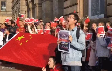 中国留学生挥舞五星红旗