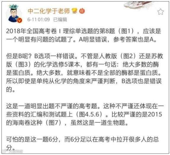 一位高中化学老师在微博发帖,