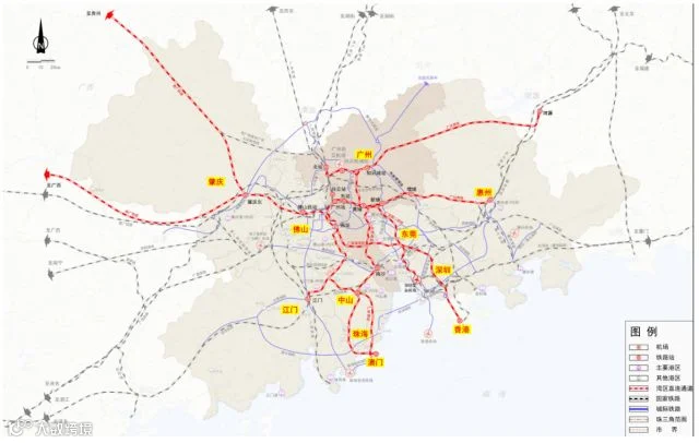 该规划中的粤港澳大湾区航空航运铁路图显示,
