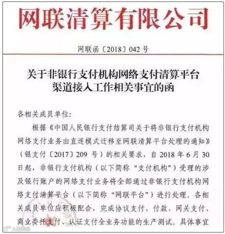2017年8月,央行支付结算司印发《中国人民银行支付结算司关于将非银行支付机构网络支付业务由直连模式迁移至网联平台处理的通知》。通知表示,自2018年6月30日起,支付机构受理的涉及银行账户的网络支付业务全部通过网联平台处理。