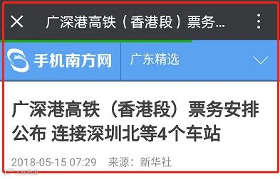 昨日,香港铁路公司(港铁)公布广深港高铁(香港段)最新票务安排。目前,广深港高铁开始跨境试运行,从广州南到西九龙,全程需1小时18分。