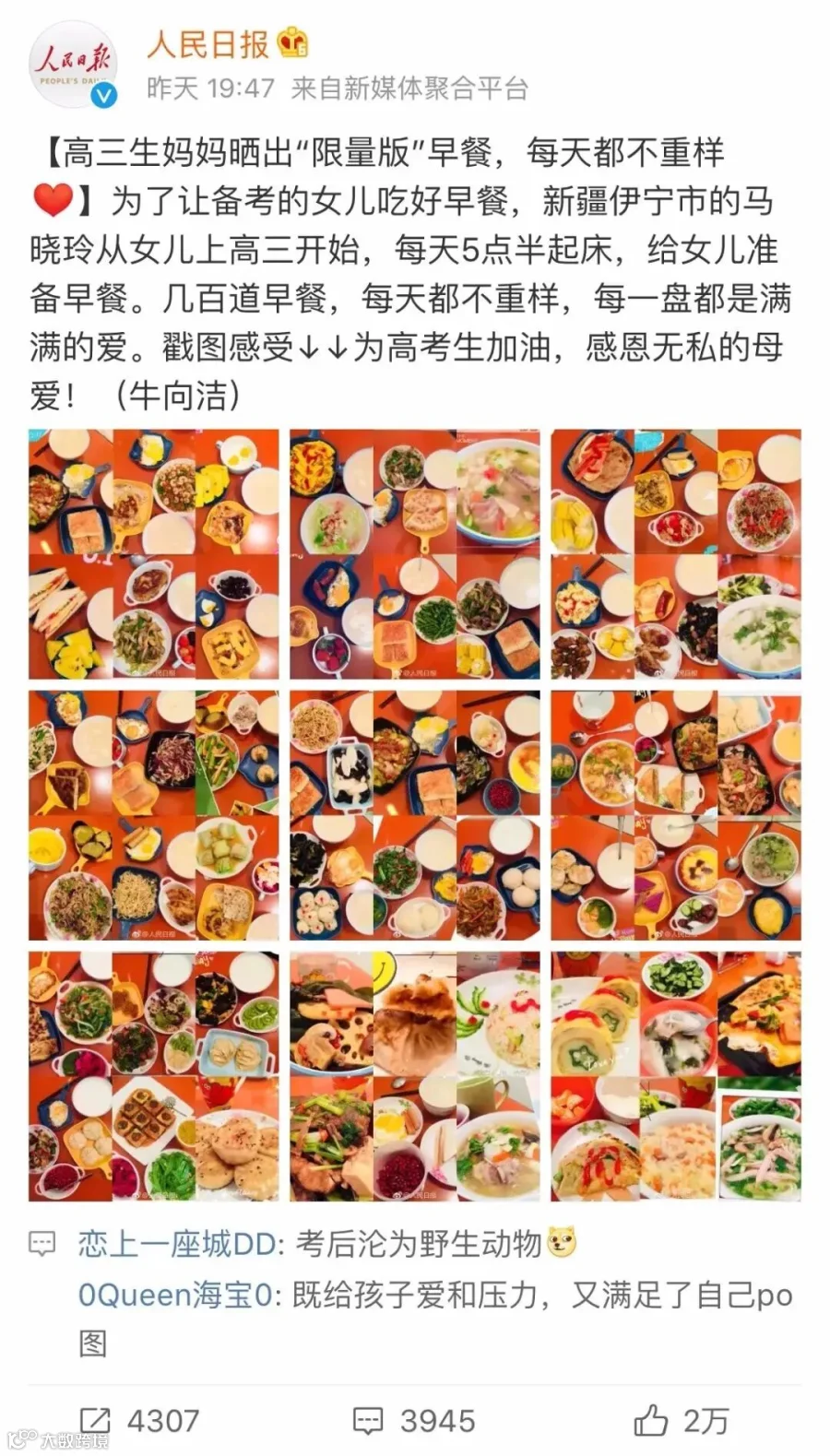@三火学妹:备考这一年妈妈每天早上早起给我做早饭,然而我每次都很晚起来,匆匆忙忙跑去学校,真的很对不起她。