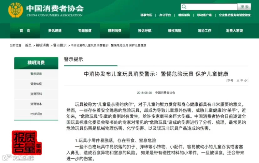 国家市场监督管理总局缺陷产品管理中心官方网站上,就曾发布《关于吸水弹软弹枪的消费预警》:
