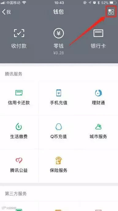 点击微信钱包界面右上角图标