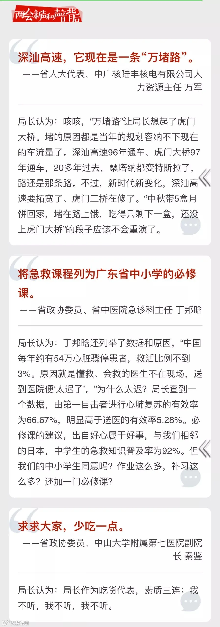 会场上,热闹的是每年省“两会”的例牌——政协委员“抢麦”环节。共有十多个委员抢到了发言机会,局长决定聊聊第二个委员的抢麦发言。