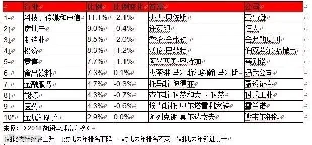 前四大行业科技、房地产、制造业和投资行业的累计财富占总财富的44%,上榜人数占总数的41%。