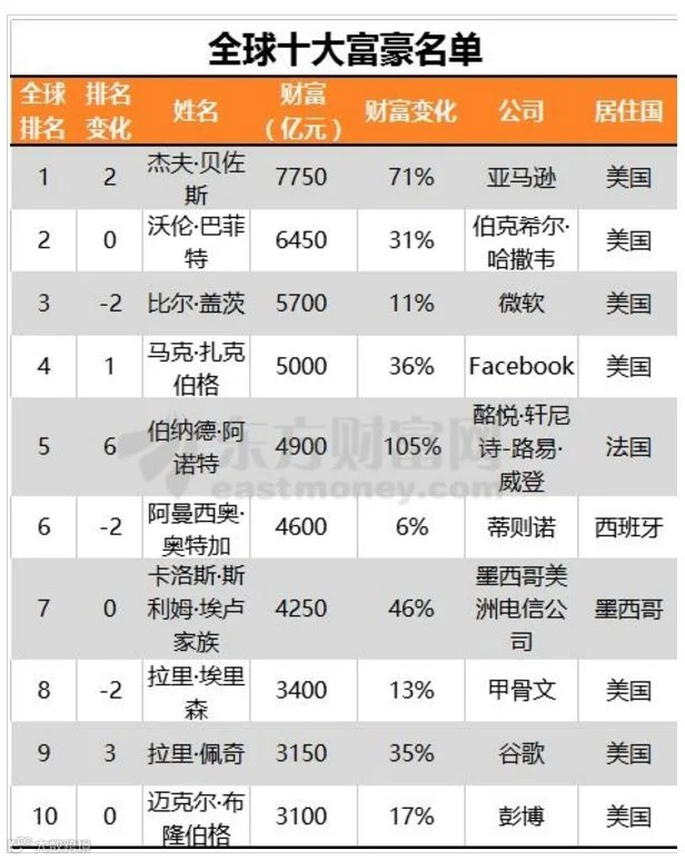 杰夫·贝佐斯的财富(7750)=马化腾(2950)+马云(2000)+王健林(1700)+李书福(1100)!