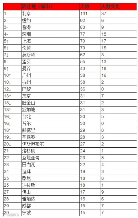 北京第3年领先于纽约蝉联“十亿美金富豪之都”,比去年又增加37位,达到131位。