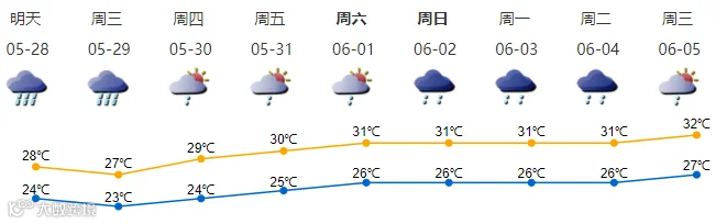 广州市区今天有大雨局部暴雨,明后天有大雨到暴雨。暴雨期间气温略降,这几天感觉会没那么闷热。