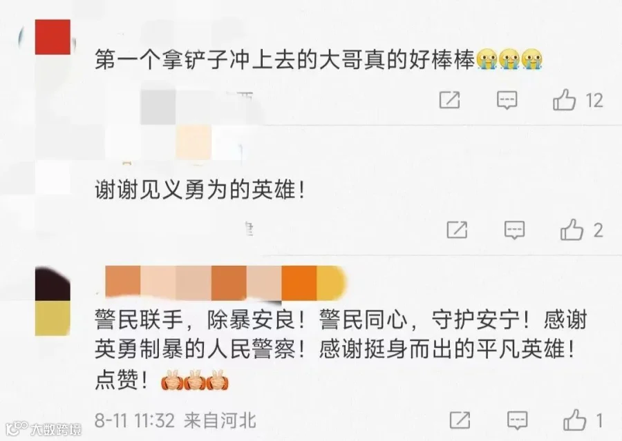 刘万刚当过兵,拿着铲子的他显得异常勇猛,“必须马上制止,路上那么多人,非常危险。”他说,当时并没有觉得害怕,只想快速把歹徒制伏。对于自己的英勇事迹,他回家后只是给家人说了,并没有告诉其他人。
