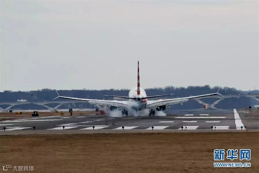 ▲ 3月13日,一架波音737 Max 8型号飞机降落在美国首都华盛顿附近的里根机场。新华社发