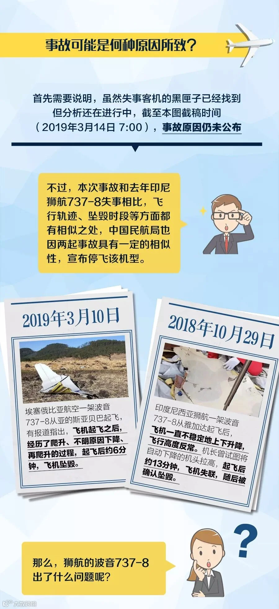 3月10日,埃塞俄比亚航空一架波音737-8飞机发生坠机空难,这是继去年10月29日印尼狮航空难事故之后,波音737-8飞机发生的第2起空难。