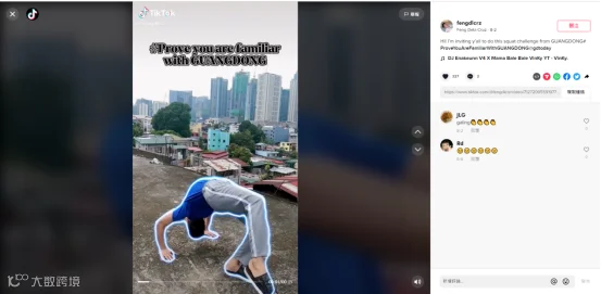 菲律宾达人@fengdlcrz发布了一条模仿电影《叶问》场景的视频,他从电影感受到了广东功夫的魅力,并表演了后空翻、还挑战了叶问蹲。别具趣味的视频引来了众多网友的模仿,来自菲律宾和英国的多位达人纷纷加入表演叶问蹲的挑战。