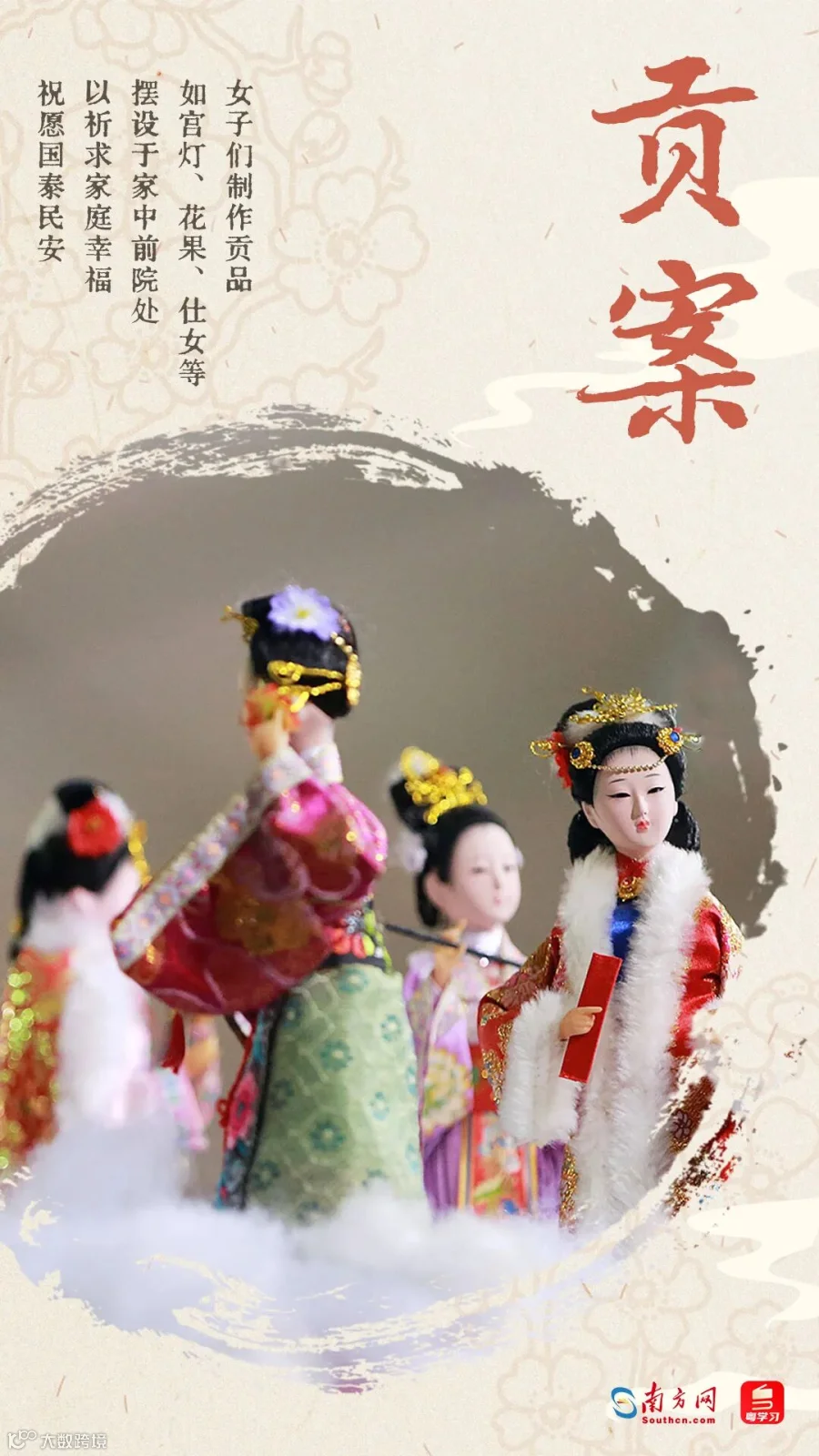 七夕贡案是广东省东莞市的传统民俗文化,基于牛郎织女传说,融汇了雕刻、刺绣、绘画、手工制作等传统手法,是七夕乞巧风俗的主体和主要表现形式。每到七夕,女子会以农作物为制作材料,手工制作各式各样的贡品,展现自己的心灵手巧,追求美好爱情婚姻。
