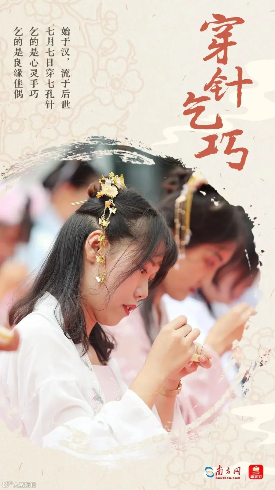 “卜巧”之俗,就是卜问女子将来是笨还是巧。流传最广的当数“穿针乞巧”,也叫“赛巧”。这是最早的乞巧方式,始于汉代,即女子比赛穿针,她们结彩线,穿七孔针,谁穿得越快,就意味着谁乞到的巧越多。穿得慢的称为“输巧”。“输巧”的人要将事先准备好的礼物送给得巧者。
