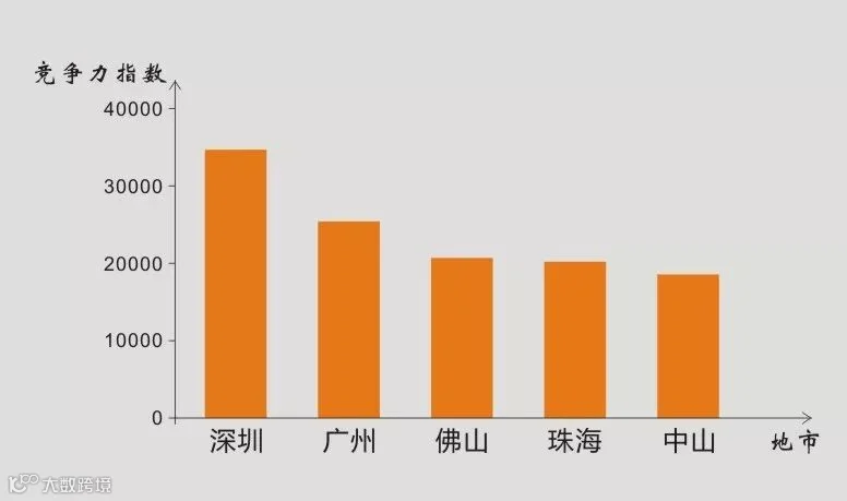 珠三角核心区城市群位居竞争力榜单前列。2017年,深圳、广州、佛山、珠海、中山位列榜单前五名;这一格局延续至2018年前三季度,珠海则由之前的第四位攀升至第三位。不难发现,竞争力指数居高的城市有着各自的优势与发展后劲。