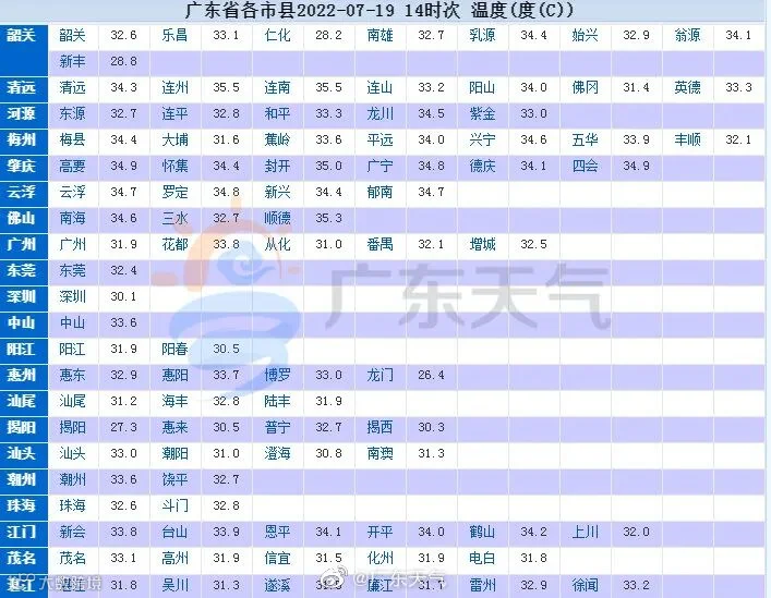 连南、封开、顺德甚至突破35℃