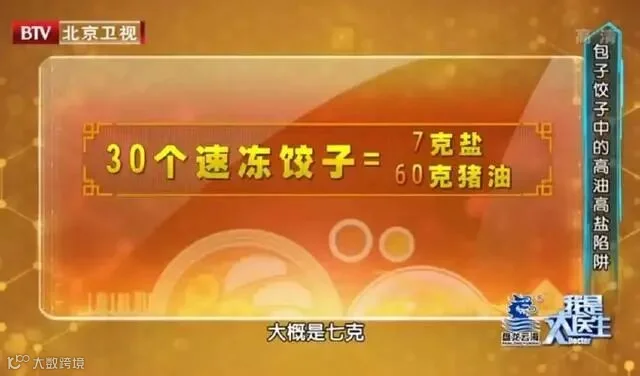 30个速冻饺子,可能含有7g盐、60g猪油!速冻饺子里白花花的一层其实就是猪油,每只饺子2g猪油。