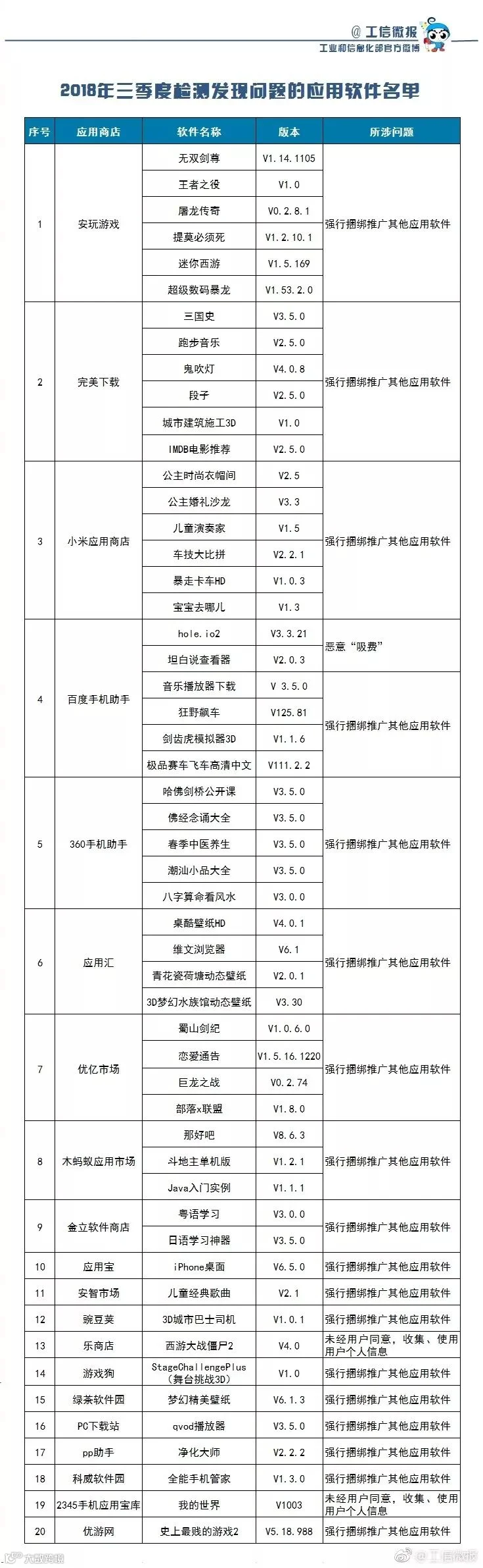 近期,工信部对48家手机应用商店的的应用软件进行技术检测,发现违规软件53款,涉及违规收集使用用户个人信息、恶意“吸费”、强行捆绑推广其他应用软件等问题。这些不良软件已全部被责令下架。