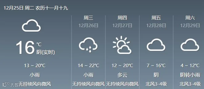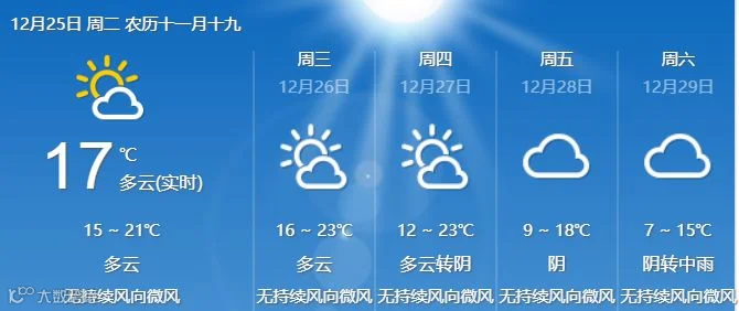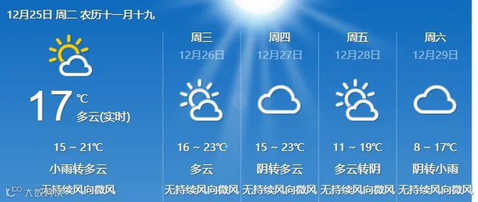 年末部分地市天气预报