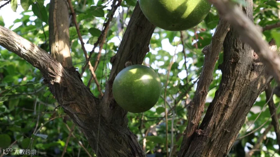 在华南国家植物园热带雨林植物温室里正在挂满果实的炮弹果,就是典型的老茎生花植物。