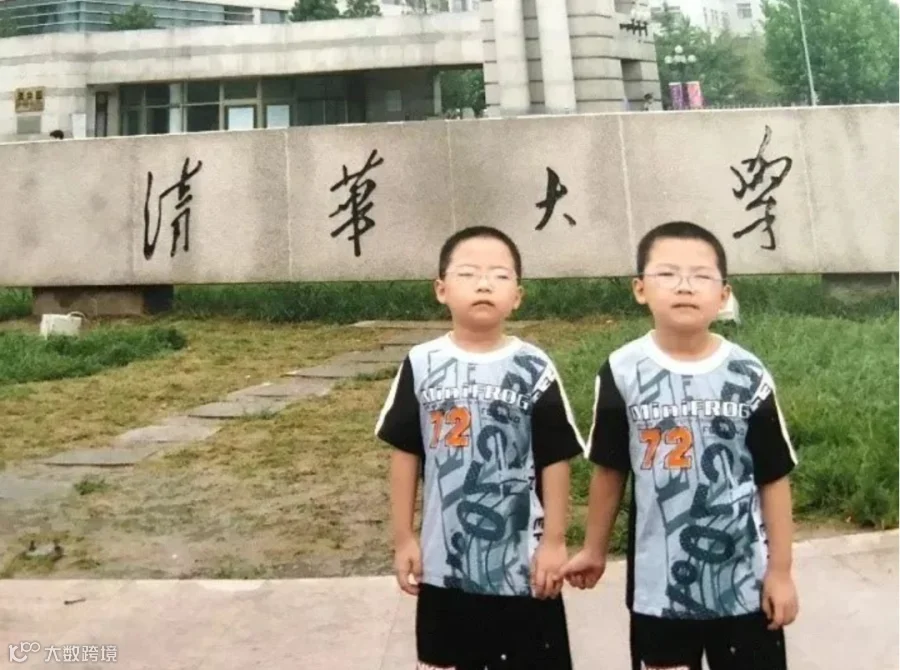 2005年,小学一年级的暑假,父母带着刘亦谦和刘亦贤来到清华大学参观,并留下了这张合影。