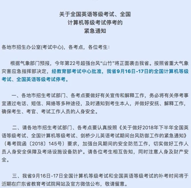 广东紧急停考通知!
