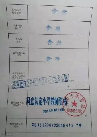 拿到了教育局颁发的小学教师资格证。