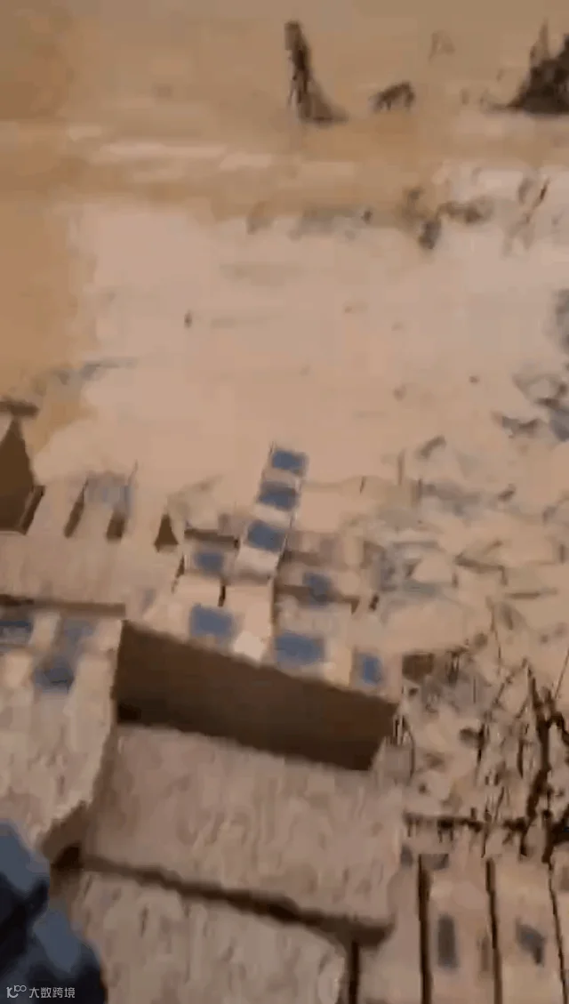 被洪水冲入激流之中