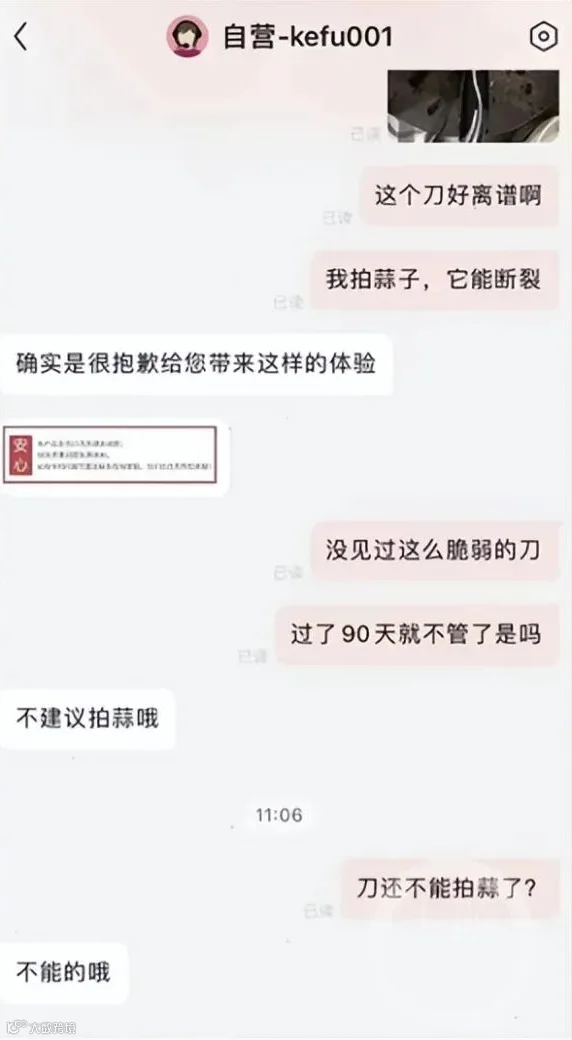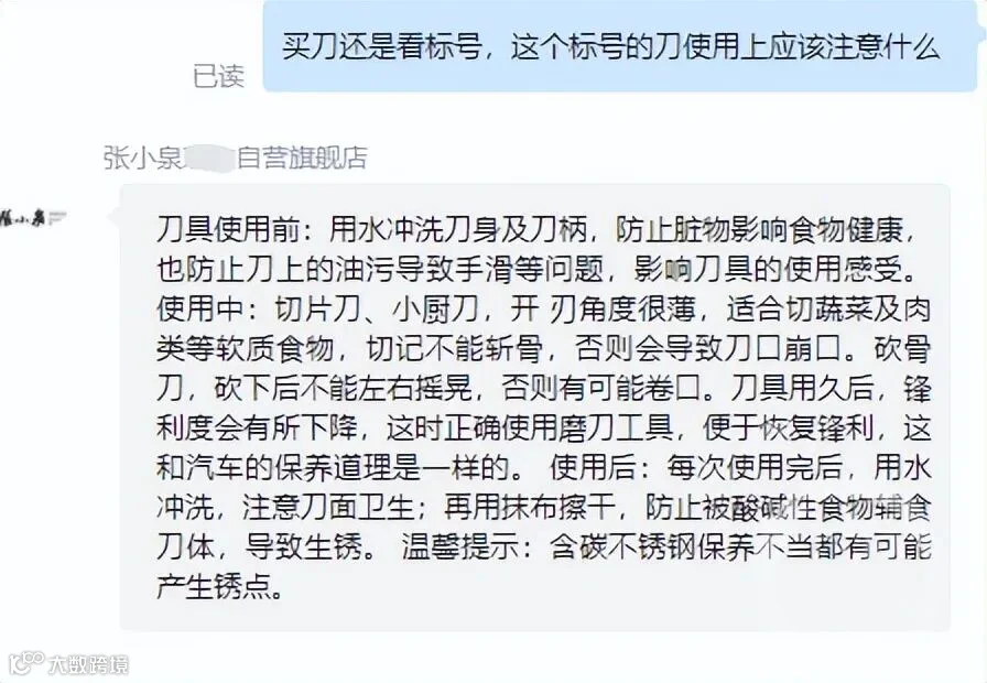 她带着疑惑去询问张小泉菜刀售后客服,