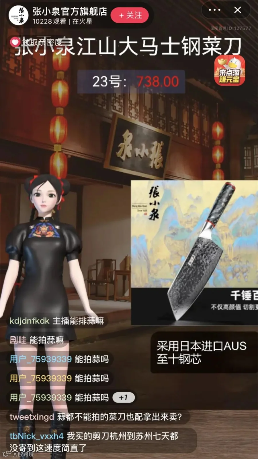 张小泉官方旗舰店直播间内网友在询问“能拍蒜吗” (图源:网络视频截图)