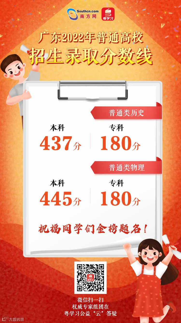今天13时30分,广东省教育考试院举行发布会,有关负责人发布今年广东高考分数线。其中,录取最低控制分数线方面,本科批次普通类(历史)437分、普通类(物理)445分。