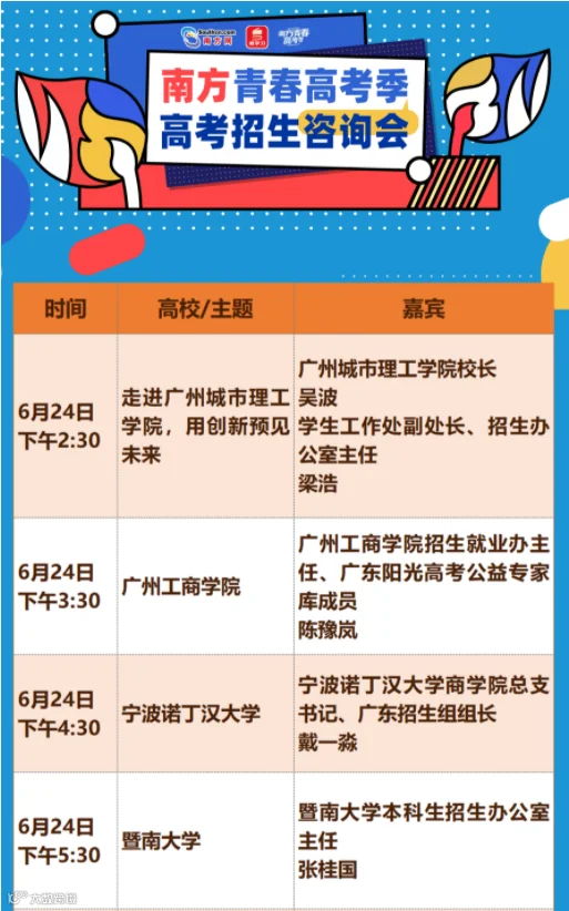 期间,南方网邀请了近40位嘉宾做客演播室,进行2022年高考招生政策解读。嘉宾阵容由大学校长、招办主任等组成,他们来自多所省内外热门高校,其中不乏985、211、“双一流”高校。