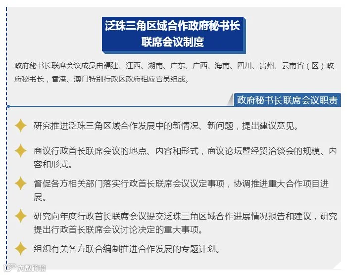 一个横跨东中西、连接内地与港澳的区域合作能够跨越十五载,良好的机制是保障合作运转最重要的支撑。下面南方君就带你用一图了解泛珠三角区域合作机制: