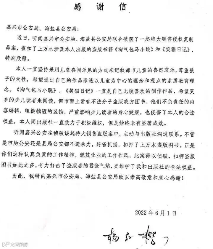 得知警方破案后,写来感谢信