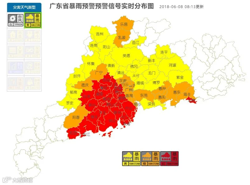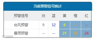 再看看暴雨预警信号,