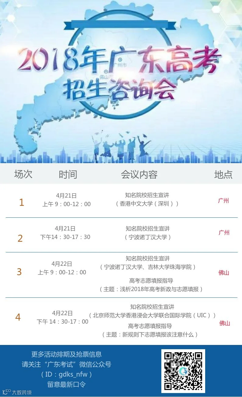 回复“佛山2”,或点击下方菜单栏“高考咨询会佛山2”免费领取4月22日下午场活动门票。