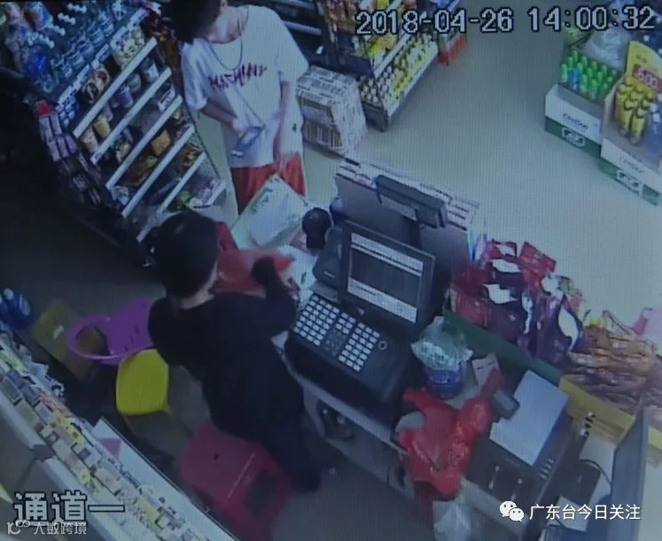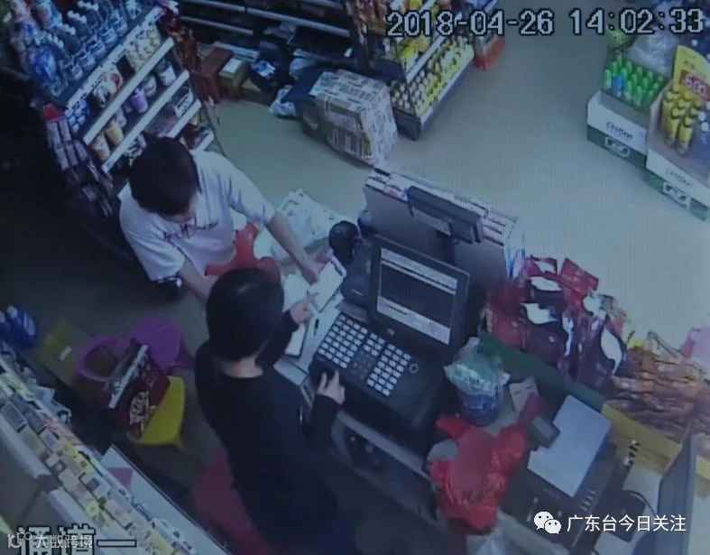 这是惠阳淡水一家便利店在4月26日中午1点多钟拍下的监控录像。当时一名年轻小伙子进入店内,找老板娘要了一包香烟,与此同时,这名小伙子拿出手机,对准收银台上的微信支付二维码进行拍照,并发送出去。紧接着,小伙子又选购了其它商品,并表示,希望微信套现500元,同时愿意支付老板娘5元钱手续费。