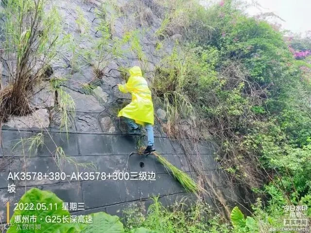 高速公路养护员及时排查隐患,做好沿线灾害预警