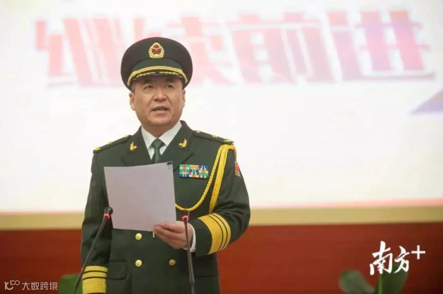 2017年6月30日,广东省军区司令员张利明在广东省军区转业干部向军旗告别仪式上发表讲话。南方日报记者 张梓望 摄(资料图)