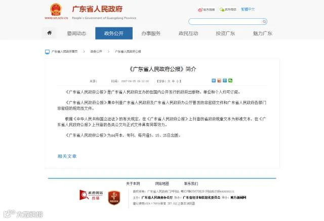 《广东省人民政府公报》是广东省人民政府主办的在国内公开发行的政府出版物。单位和个人均可订阅。