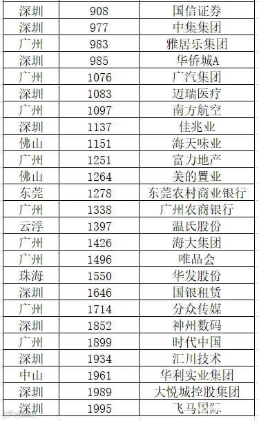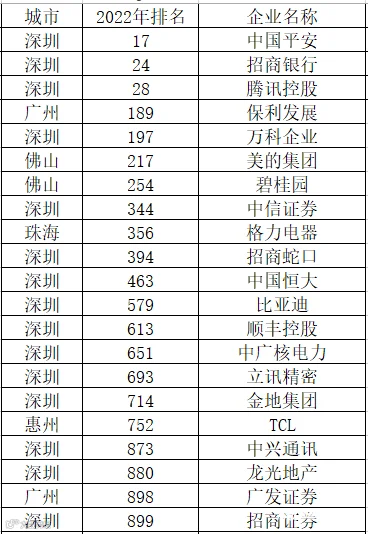 福布斯2022全球企业2000强广东榜单:共46家企业上榜,深圳最多。