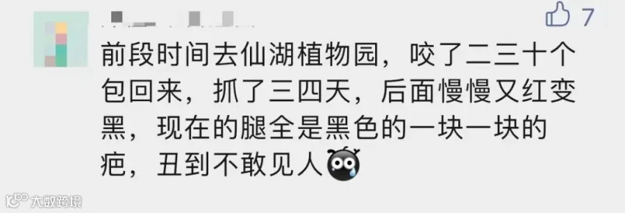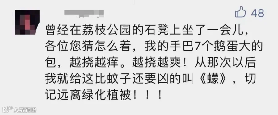 而且这种虫最近在公园、河边都特别多,大家被它咬到满脚都是包,不过就连它的真面目都很难看清。
