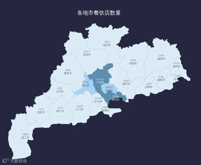 据统计,广东各类餐厅总数超过60万家,上图仅是抽样36万家餐厅的数据所得。